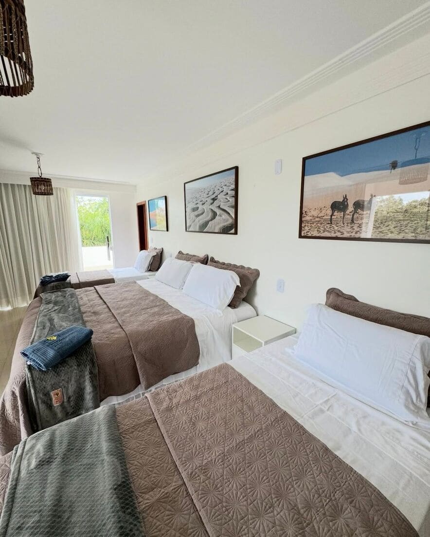 Além do aconchego dos quartos, o espaço conta com piscina com bar, quadra de vôlei, área de meditação, heliponto e uma belíssima praia de rio privativa, perfeita para relaxar e se conectar com a energia dos Lençóis Maranhenses.